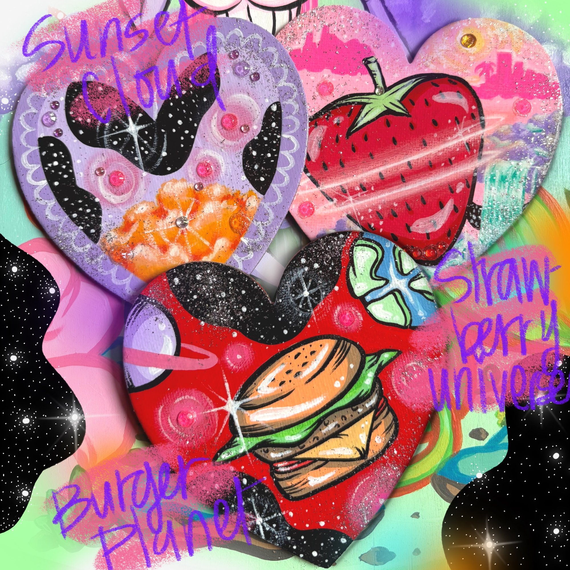 4”x4” Acrylic paint, gems & ✨glitter✨ on Heart shaped magnetic canvas